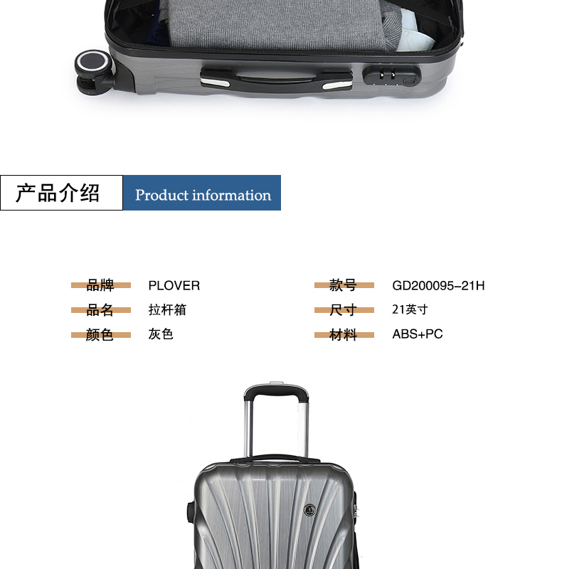 PLOVER香港啄木鸟贝壳纹旅行箱万向轮21英寸拉杆箱 GD200095-21H
