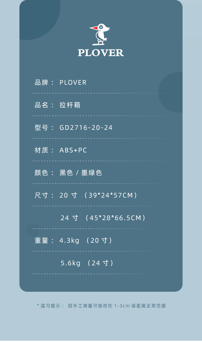 PLOVER香港啄木鸟20英寸/24英寸铝框海关锁拉杆箱 GD2716